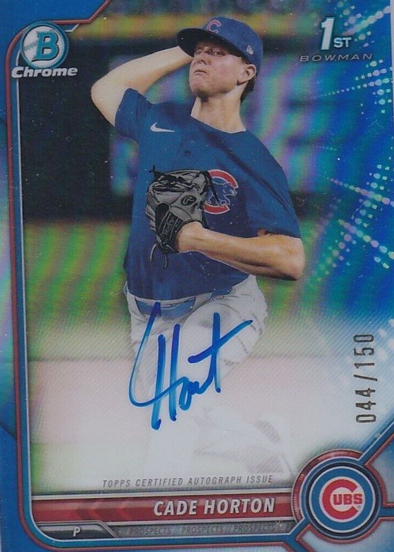2022 Bowman Chrome Blue Refractor Auto CADE HORTON 1st Bowman CUBS CDA-CHN /150