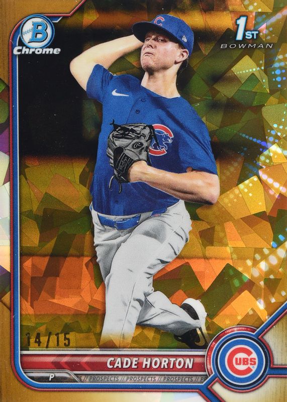 Best Prices Available For Sale of Cade Horton 2022 Bowman Draft Sapphire Edition #BDC-193 Chrome - Gold /15 (1st)