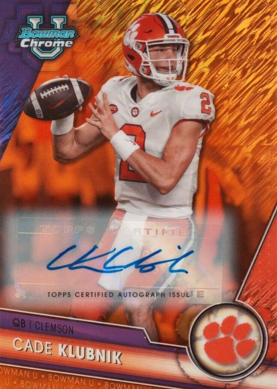 Best Prices Available For Sale of Cade Klubnik 2023 Bowman Chrome University #33 Prospect Auto - Orange Shimmer Refractor /25