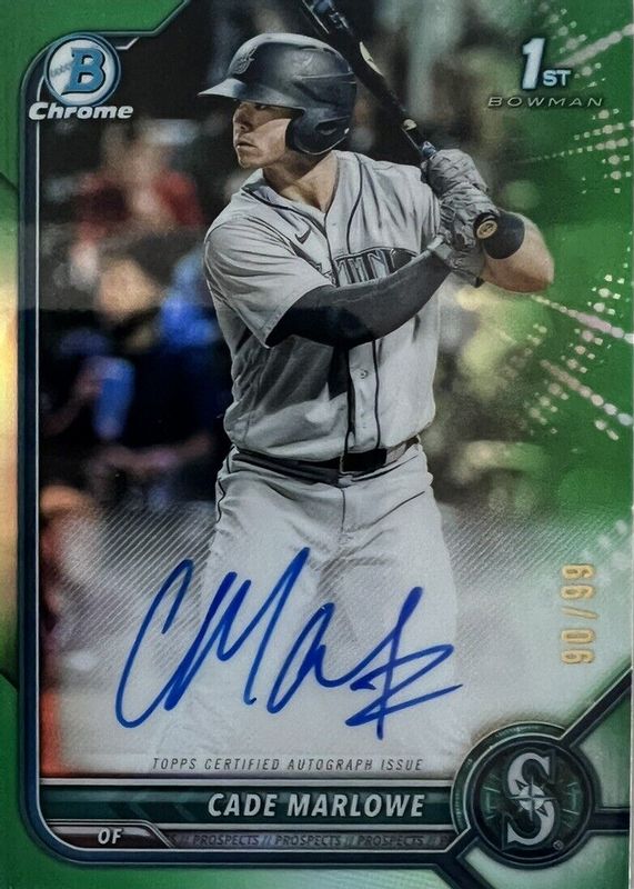 2022 Bowman Chrome Cade Marlowe Auto Green Refractor/99 Mariners 1st Bowman