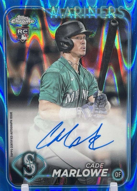 Cade Marlowe Mariners RC Auto 2024 Topps Chrome Blue RayWave #RA-CMA /150
