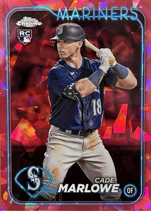 The Cade Marlowe 2024 Topps Chrome Sapphire Edition #286 Red /5 Rookie card in Raw condition has not changed in price in the last 30 days and was last sold for $48.79 .