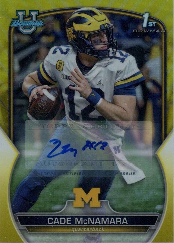 Cade McNamara 2022 Bowman University Chrome Yellow Refractor Auto 54/75 Michigan