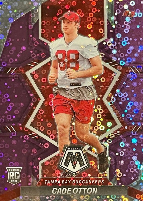 The Cade Otton 2022 Mosaic #361 No Huddle Purple /50 Rookie card in Raw condition has not changed in price in the last 30 days and was last sold for $10.59 .