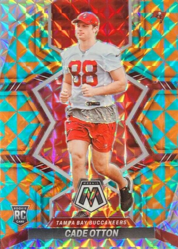 The Cade Otton 2022 Mosaic #361 Tessellation /15 Rookie card in Raw condition has not changed in price in the last 30 days and was last sold for $29.00 .