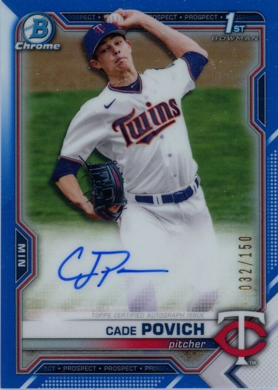 2021 CADE POVICH Bowman Chrome Draft 1st Prospect Blue Refractor Auto /150 TWINS