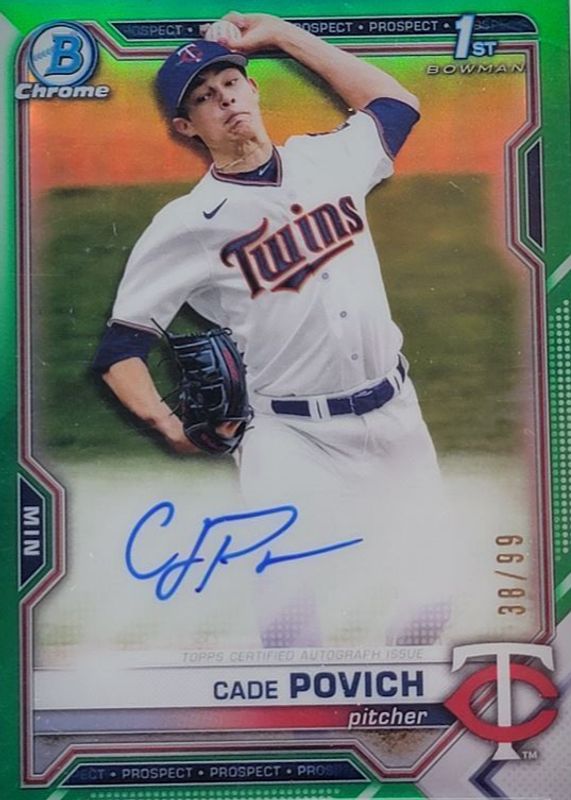 Cade Povich 2021 Bowman Draft #CDA-CPO Chrome DP Auto - Green Refractor /99 (1st) RAW Price Guide