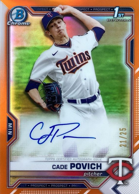 Cade Povich 2021 Bowman Draft #CDA-CPO Chrome DP Auto - Orange Refractor /25 (1st) RAW Price Guide