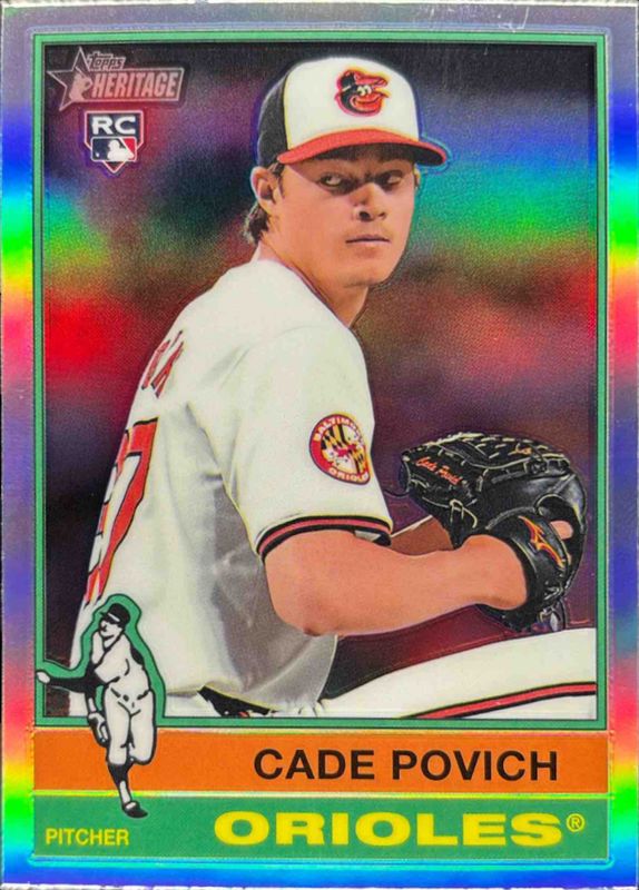 The Cade Povich 2025 Topps Heritage #219 Chrome - Red Refractor Rookie card is 1 of 26 Cade Povich's card variations in the 2025 Topps Heritage set being tracked by Sports Card Investor, including Base, Black Border, Dark Blue Border, Dark Green Border, and Dark Yellow Border.