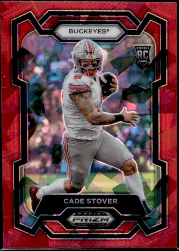 The Cade Stover 2024 Prizm Draft Picks #174 Red Ice Rookie card is 1 of 87 Cade Stover's card variations in the 2024 Prizm Draft Picks set being tracked by Sports Card Investor, including Base, Green, Purple Wave, Ruby Wave, and Silver.