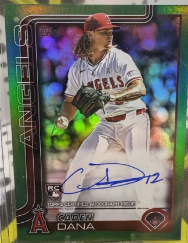 The Caden Dana 2025 Topps #422 Flagship Real One Autographs (Series 2) - Green Foil /99 Rookie card is 1 of 111 Caden Dana's card variations in the 2025 Topps set being tracked by Sports Card Investor, including Base, Aqua Holo Foil, Diamante Foil, Holo Foil, and Pink Diamante Foil.