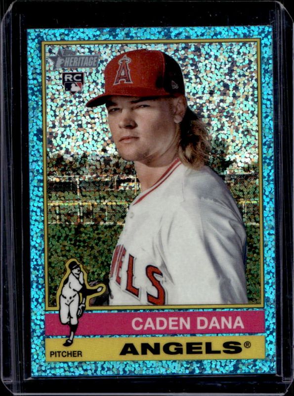 The Caden Dana 2025 Topps Heritage #378 Chrome - Aqua Sparkle Refractor Rookie card is 1 of 26 Caden Dana's card variations in the 2025 Topps Heritage set being tracked by Sports Card Investor, including Base, Black Border, Dark Blue Border, Dark Green Border, and Dark Yellow Border.