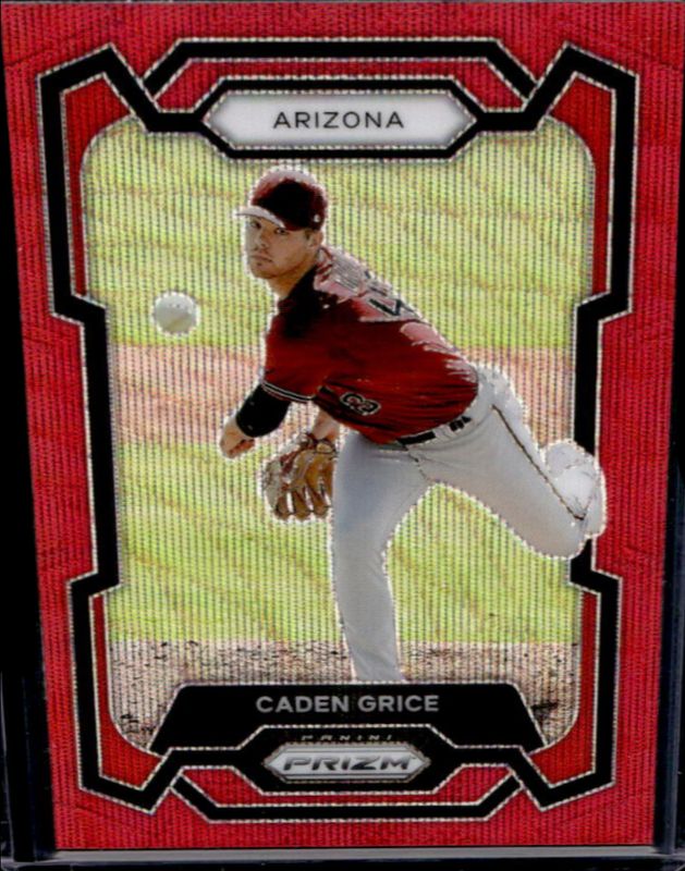 The Caden Grice 2024 Prizm #295 Ruby Wave card is 1 of 30 Caden Grice's card variations in the 2024 Prizm set being tracked by Sports Card Investor, including Base, Blue Ice, Green, Green Ice, and Pink Ice.