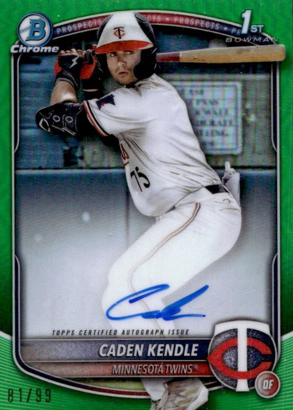 2025 Bowman Caden Kendle Chrome Auto Green Refractor 1st #81/99 Twins