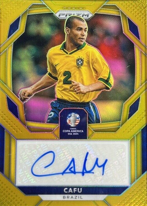 This card is 1 of 28 Cafu's card variations in the 2024 Prizm Copa America set being tracked by Sports Card Investor, including #10 Dual Signatures, #DS-CR Dual Signatures, #DS-CR Dual Signatures - Blue Shimmer, #10 Dual Signatures - Blue Shimmer, and #10 Dual Signatures - Green Wave.