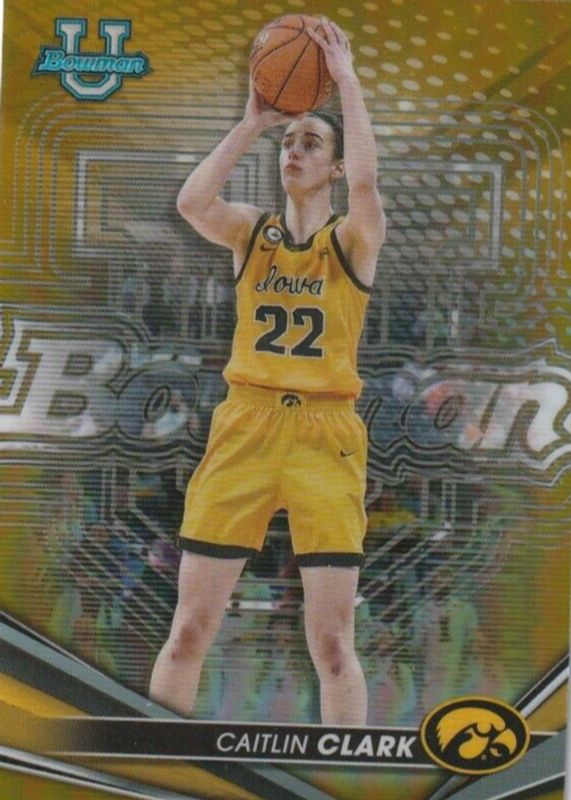 2022-23 Bowman's Best University Caitlin Clark gold refractor #/50 Iowa Hawkeyes