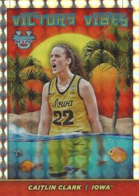 Caitlin Clark 2023 Bowman Best University #VV-10 Victory Vibes - Geometric Refractor RAW Price Guide