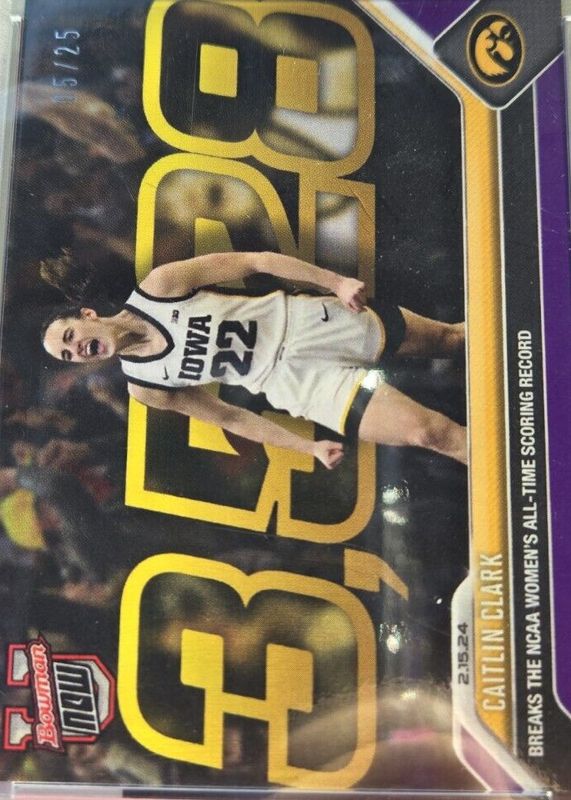 Caitlin Clark 2023 Bowman U Now #49 Purple /25 RAW Price Guide