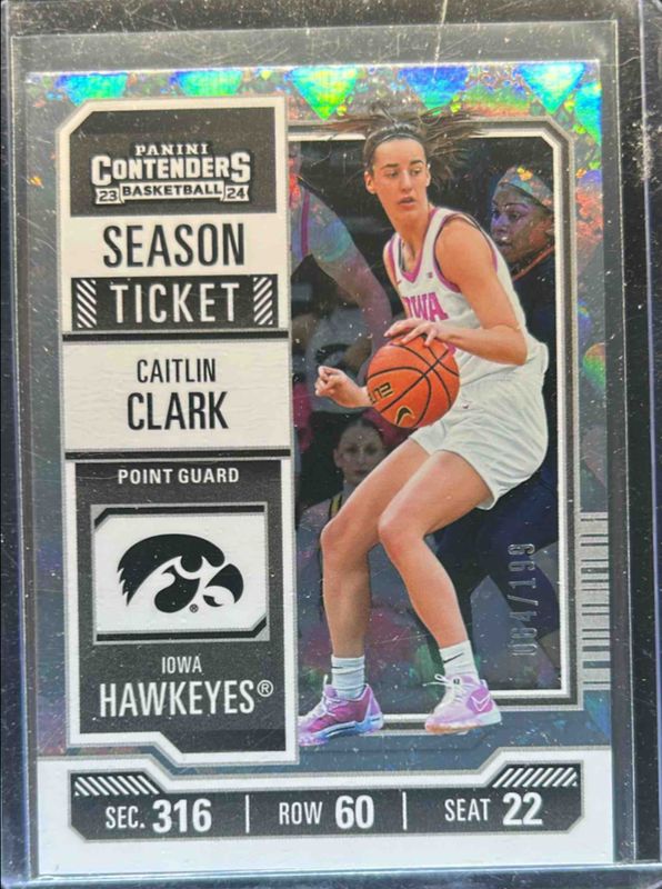 Caitlin Clark 2024 Panini Caitlin Clark Collection #CC4 College Contenders - Floating Hearts /199 Rookie RAW Price Guide