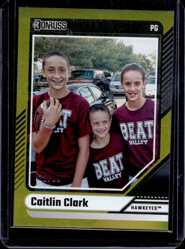 The Caitlin Clark 2024 Panini Caitlin Clark Collection #16 Donruss Base - Gold /99 Rookie card is 1 of 710 Caitlin Clark's card variations in the 2024 Panini Caitlin Clark Collection set being tracked by Sports Card Investor, including #AS1 Artistic Selections, #AS2 Artistic Selections, #CC Autographs, #CC Autographs - Gold Vinyl, and #CL3 Campus Legends.