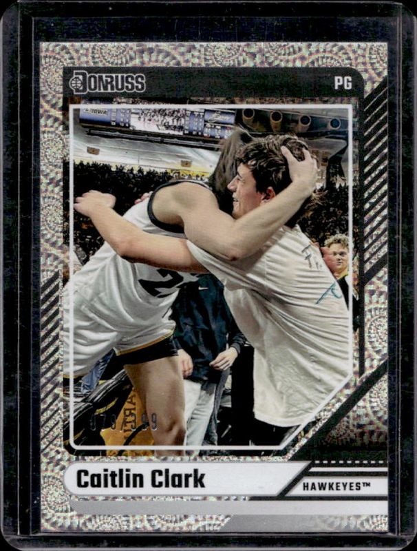 The Caitlin Clark 2024 Panini Caitlin Clark Collection #19 Donruss Base - Vortex /399 Rookie card is 1 of 710 Caitlin Clark's card variations in the 2024 Panini Caitlin Clark Collection set being tracked by Sports Card Investor, including #AS1 Artistic Selections, #AS2 Artistic Selections, #CC Autographs, #CC Autographs - Gold Vinyl, and #CL3 Campus Legends.