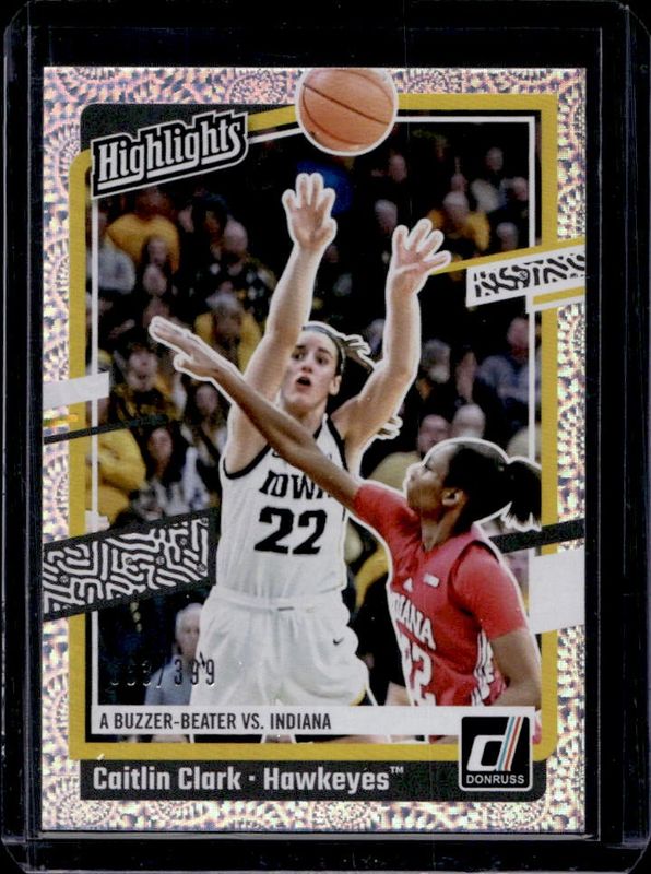 The Caitlin Clark 2024 Panini Caitlin Clark Collection #H6 Highlights - Metalized Rookie card is 1 of 710 Caitlin Clark's card variations in the 2024 Panini Caitlin Clark Collection set being tracked by Sports Card Investor, including #AS1 Artistic Selections, #AS2 Artistic Selections, #CC Autographs, #CC Autographs - Gold Vinyl, and #CL3 Campus Legends.