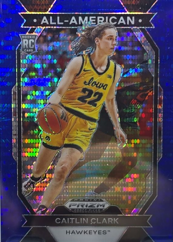 Caitlin Clark 2024 Prizm Draft Picks #23 All-American - Blue Pulsar /99 Rookie RAW Price Guide