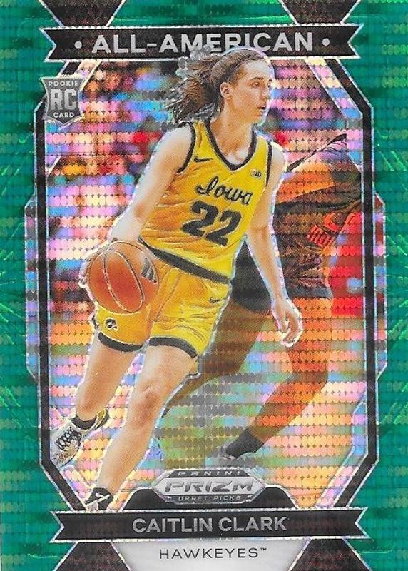 Caitlin Clark 2024 Prizm Draft Picks #23 All-American - Green Pulsar /25 Rookie RAW Price Guide