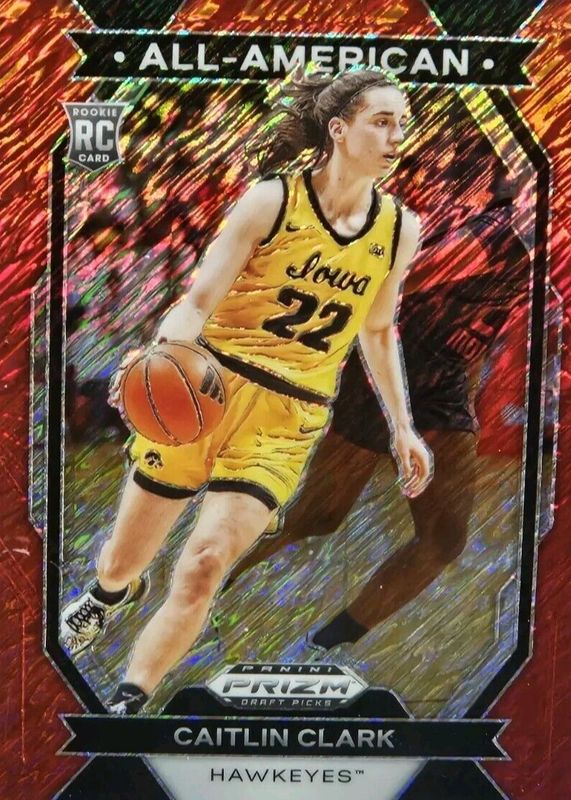 Caitlin Clark 2024 Prizm Draft Picks #23 All-American - Red Shimmer /9 Rookie RAW Price Guide