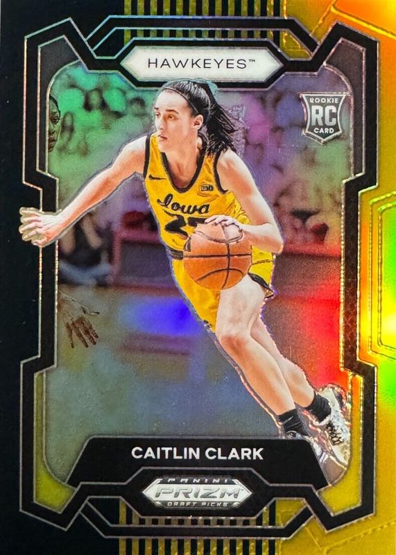 Recent Sales of Caitlin Clark 2024 Prizm Draft Picks #57 Black Gold /5 Rookie Raw