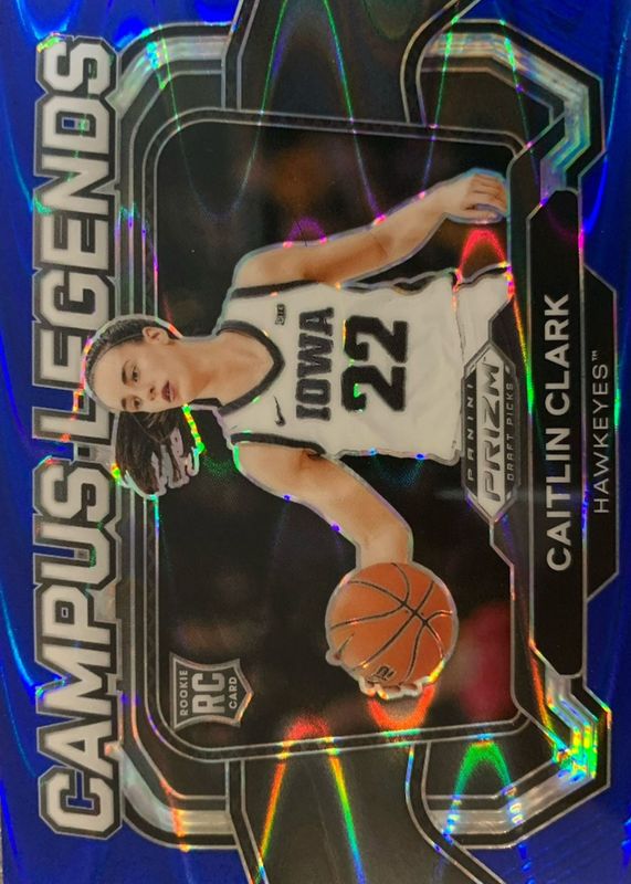Best Prices Available For Sale of Caitlin Clark 2024 Prizm Draft Picks #5 Campus Legends - Blue Seismic /149