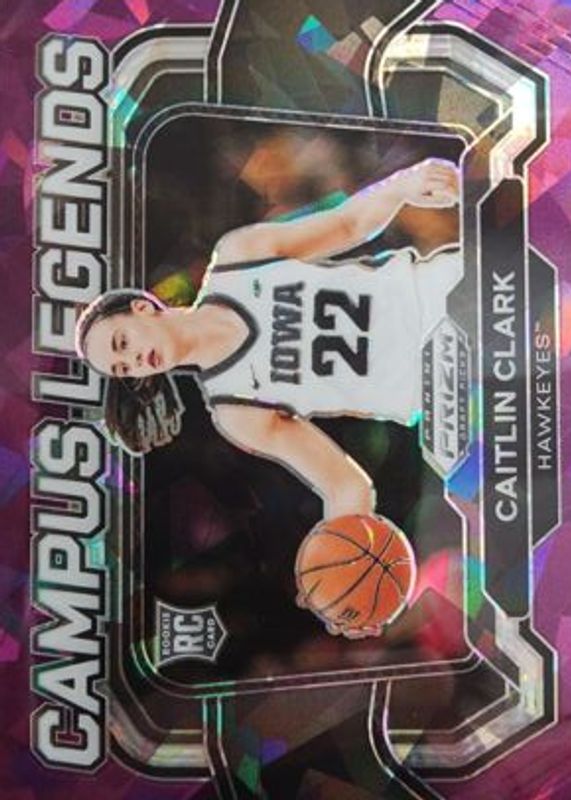 The Caitlin Clark 2024 Prizm Draft Picks #5 Campus Legends - Purple Ice /149 Rookie card in Raw condition has not changed in price in the last 30 days and was last sold for $62.00 .