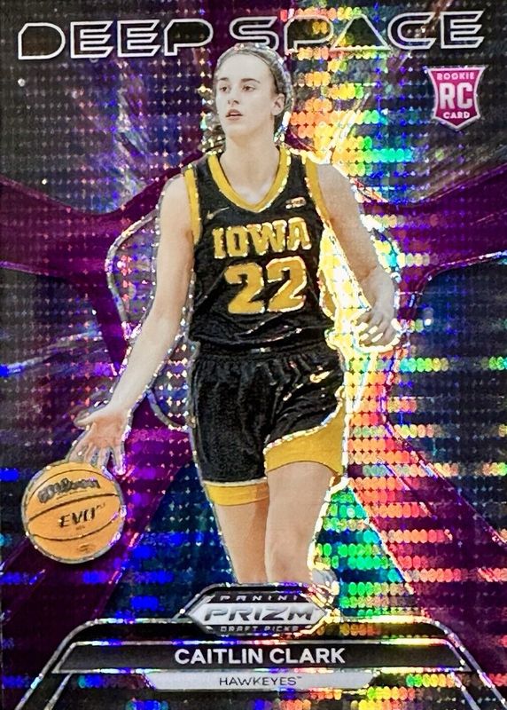 Caitlin Clark 2024 Prizm Draft Picks #8 Deep Space - Purple Pulsar /55 Rookie RAW Price Guide