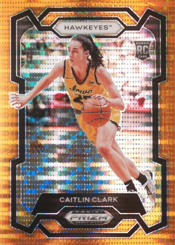 Caitlin Clark 2024 Prizm Draft Picks #57 Orange Pulsar /49 Rookie RAW Price Guide