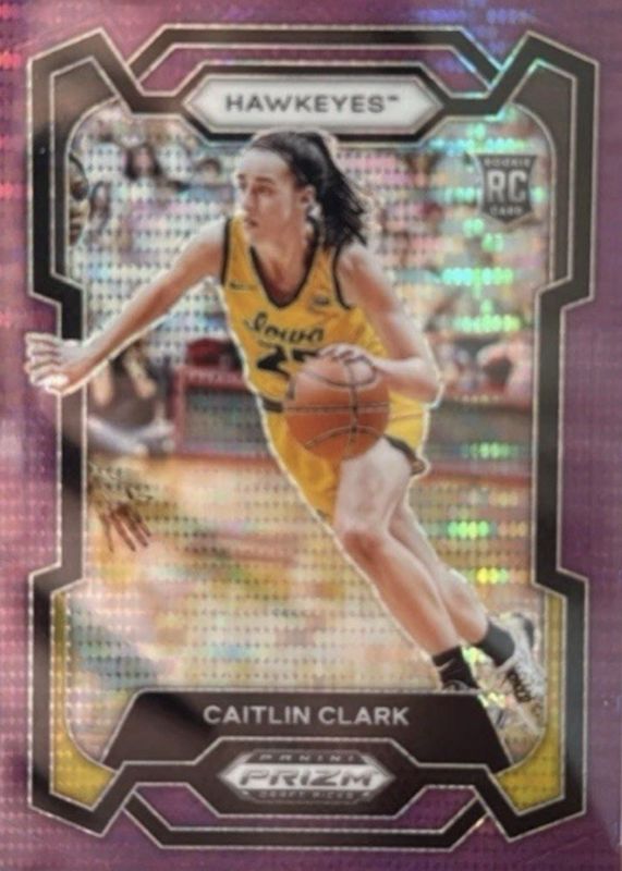Caitlin Clark 2024 Prizm Draft Picks #57 Purple Pulsar /55 Rookie RAW Price Guide