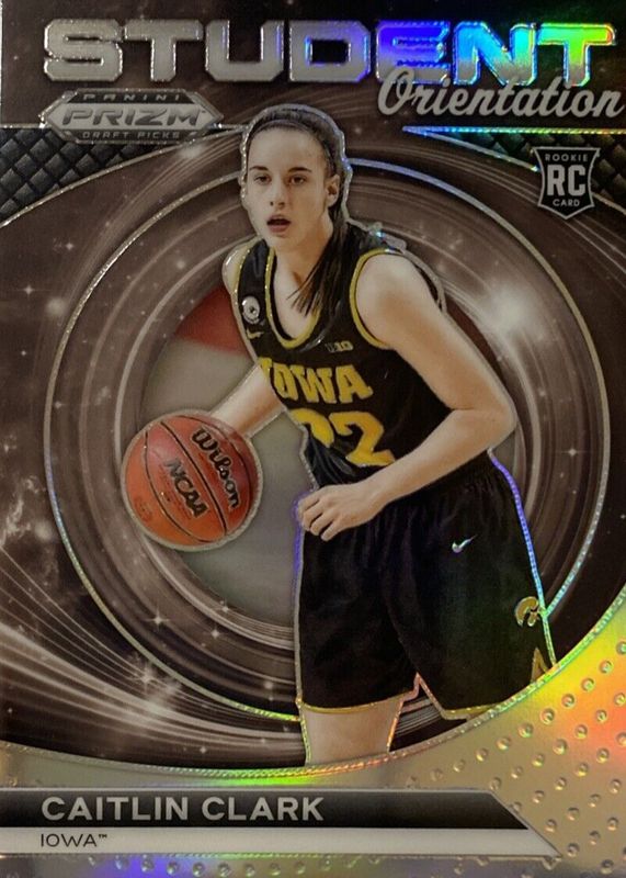The Caitlin Clark 2024 Prizm Draft Picks #22 Student Orientation - Silver Rookie card in Raw condition has moved up $3.66 (+93.1%) in the last 30 days and was last sold for $7.58 .