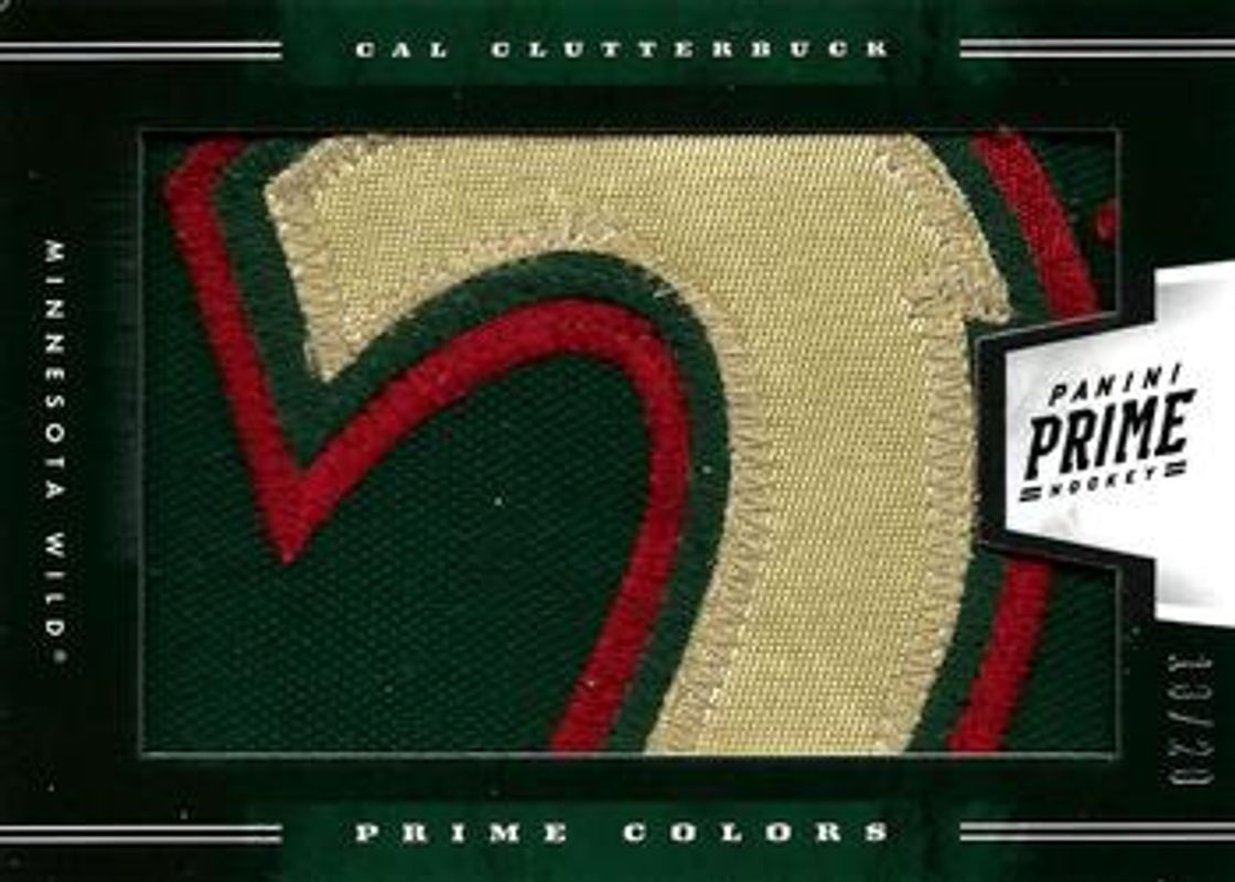 The Cal Clutterbuck 2011 Prime #40 Prime Colors Patch Horizontal /8 card is 1 of 5 Cal Clutterbuck's card variations in the 2011 Prime set being tracked by Sports Card Investor, including Prime Colors Patch Vertical /11, Genuine Letters /6, Prime Authentics Patch /1, and Prime Ties /1.