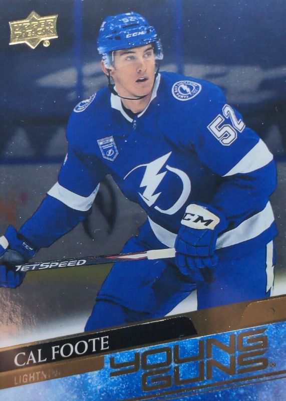 This card is 1 of 9 Cal Foote's card variations in the 2020 Upper Deck set being tracked by Sports Card Investor, including Young Guns Base, Young Guns - Clear Cut, Young Guns - Clear Cut Exclusives, Young Guns - French, and Young Guns - Jumbo.
