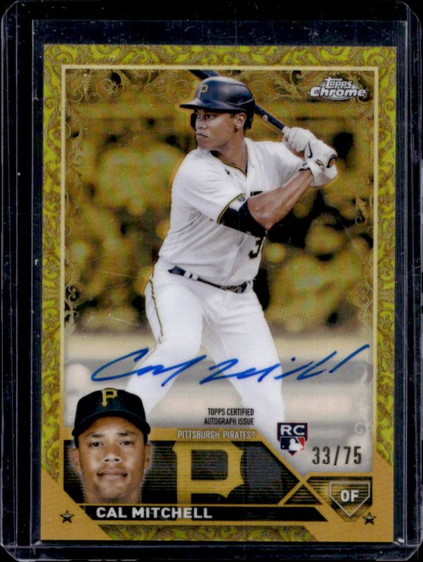 Cal Mitchell 2023 Topps Gilded Collection #CGA-CM Chrome Gold Etch Autographs - Yellow Refractor /75 Rookie RAW Price Guide