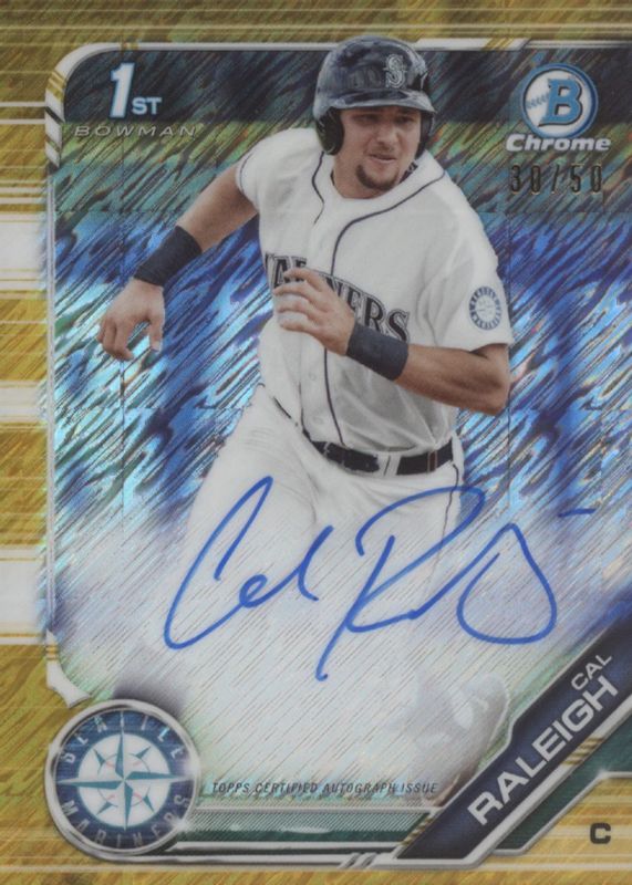 2019 Bowman Chrome Cal Raleigh 1st Gold Shimmer Refractor RC Auto /50