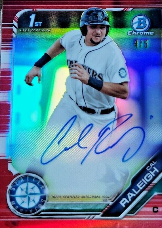 Cal Raleigh 2019 Bowman Chrome #CPA-CR Prospect Auto - Red Refractor /5 (1st) RAW Price Guide