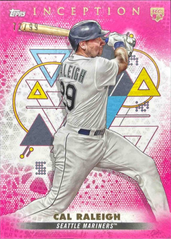 The Cal Raleigh 2022 Topps Inception #3 Magenta /99 Rookie card is 1 of 42 Cal Raleigh's card variations in the 2022 Topps Inception set being tracked by Sports Card Investor, including Base, Green, Purple /150, Red /75, and Orange /50.