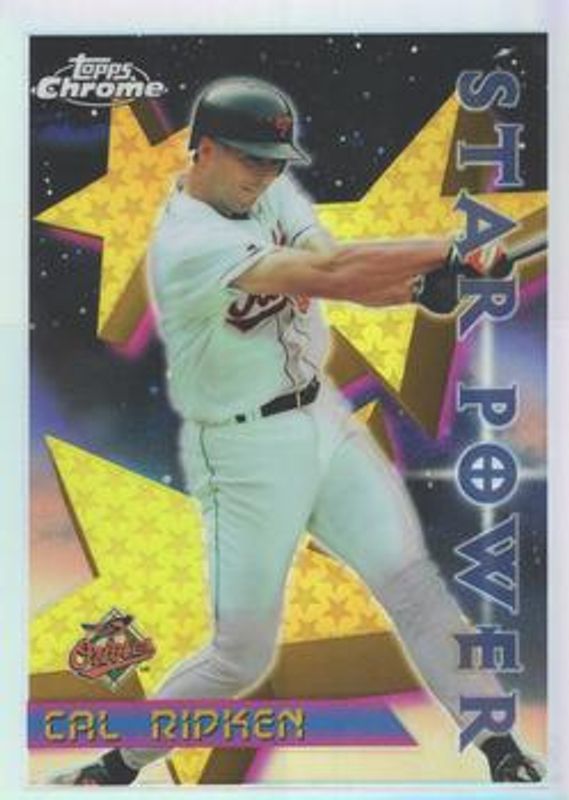 The Cal Ripken Jr. 1996 Topps Chrome #82 Refractor card is 1 of 10 Cal Ripken Jr.'s card variations in the 1996 Topps Chrome set being tracked by Sports Card Investor, including #82 Base, #28 Base, #67 Base, #82 Star Power, and #28 Refractor.