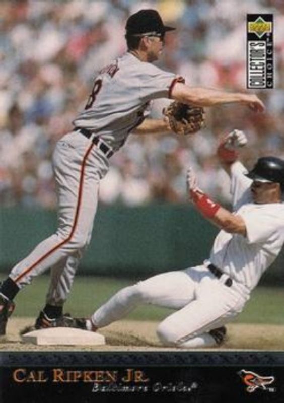 The Cal Ripken, Jr. 1996 Upper Deck Collector's Choice #10 Ripken Collection card is 1 of 32 Cal Ripken, Jr.'s card variations in the 1996 Upper Deck Collector's Choice set being tracked by Sports Card Investor, including #1 Base, #362 Base, #1 Gold Signatures, #362 Gold Signatures, and #1 Silver Signatures.
