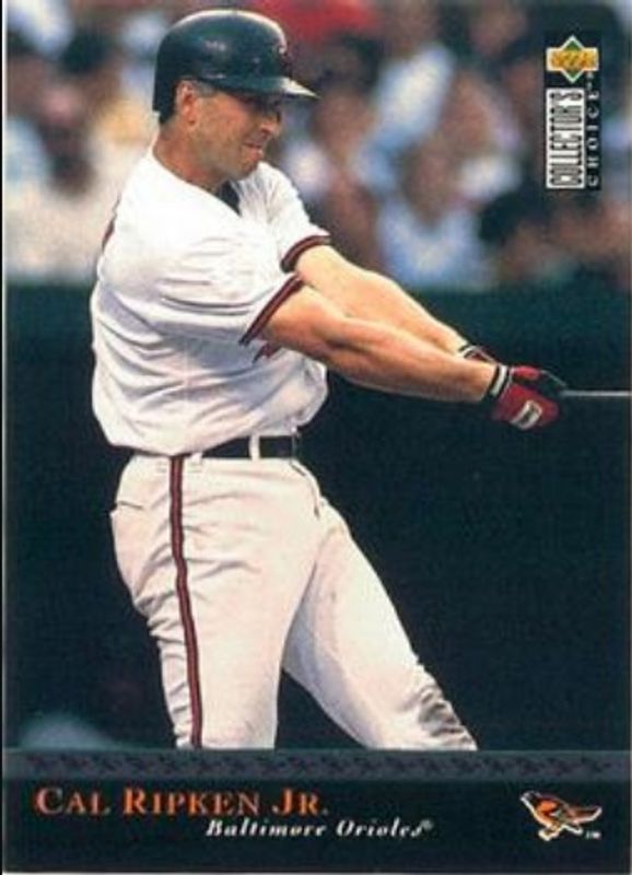 The Cal Ripken, Jr. 1996 Upper Deck Collector's Choice #9 Ripken Collection card is 1 of 32 Cal Ripken, Jr.'s card variations in the 1996 Upper Deck Collector's Choice set being tracked by Sports Card Investor, including #1 Base, #362 Base, #1 Gold Signatures, #362 Gold Signatures, and #1 Silver Signatures.