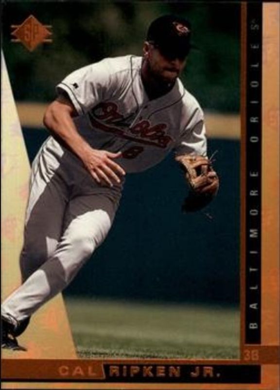The Cal Ripken, Jr. 1997 SP #34 Base card is 1 of 5 Cal Ripken, Jr.'s card variations in the 1997 SP set being tracked by Sports Card Investor, including Inside Info, Marquee Matchups, Special FX, and Game Film /500.