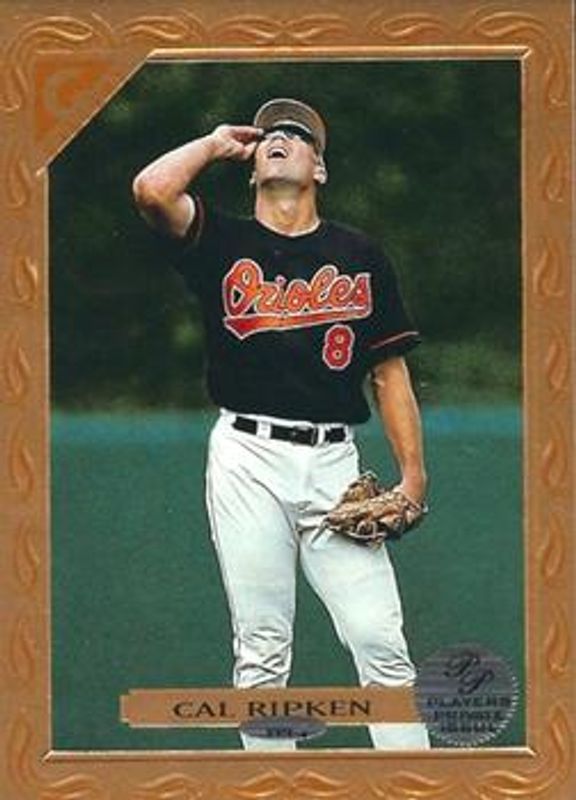 The Cal Ripken Jr. 1997 Topps Gallery #PPI-4 Players Private Issue card is 1 of 5 Cal Ripken Jr.'s card variations in the 1997 Topps Gallery set being tracked by Sports Card Investor, including Base, Gallery of Heroes, Peter Max, and Peter Max - Signature Series Serigraphs.