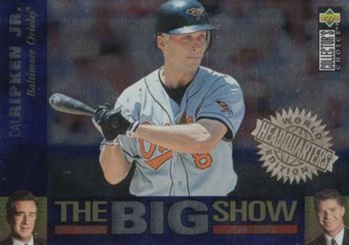 The Cal Ripken, Jr. 1997 Upper Deck Collector's Choice #5 The Big Show World Headquarters Edition card is 1 of 20 Cal Ripken, Jr.'s card variations in the 1997 Upper Deck Collector's Choice set being tracked by Sports Card Investor, including Base, All Star Connection, Big Shots, Big Shots 5x7, and Big Shots Gold Signatures.