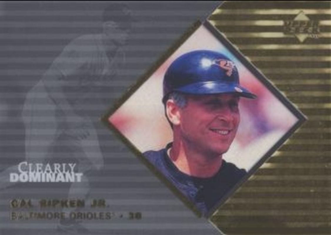 The Cal Ripken, Jr. 1998 Upper Deck #CD8 Clearly Dominant /250 card is 1 of 21 Cal Ripken, Jr.'s card variations in the 1998 Upper Deck set being tracked by Sports Card Investor, including #310 Base, #614 Base, #145 Base, #40 10th Anniversary Preview, and #40 10th Anniversary Preview Edition Retail.