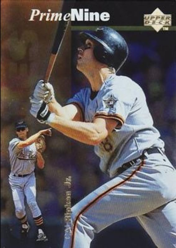 The Cal Ripken, Jr. 1998 Upper Deck #PN32 Prime Nine card is 1 of 21 Cal Ripken, Jr.'s card variations in the 1998 Upper Deck set being tracked by Sports Card Investor, including #310 Base, #614 Base, #145 Base, #40 10th Anniversary Preview, and #40 10th Anniversary Preview Edition Retail.